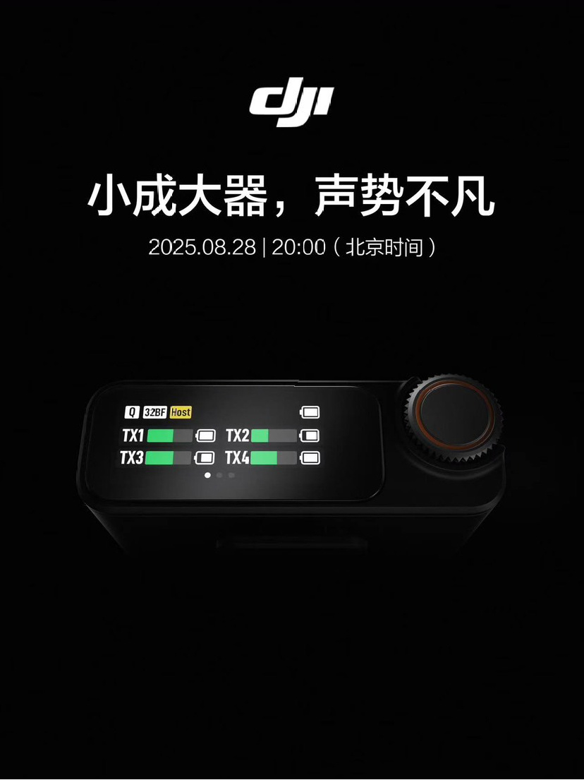 大疆麦克风新品官宣 8 月 28 日晚发布,支持一拖四