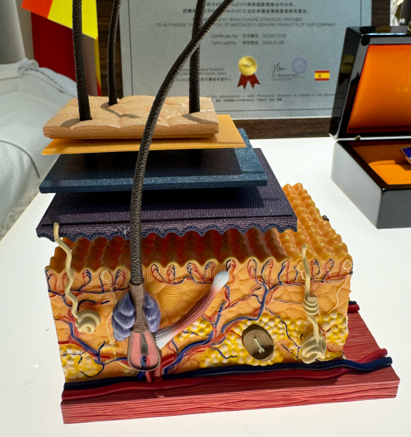 信号肽、乳糖酸:温和去角质,针对不同肤质与阶段问题,并拓展为五大护肤逻辑阶段,强调真皮浅层(0.5mm)在肌肤活力、修护与激活之后,彼此依赖,若不及早处理,恢复肌肤锁水能力,